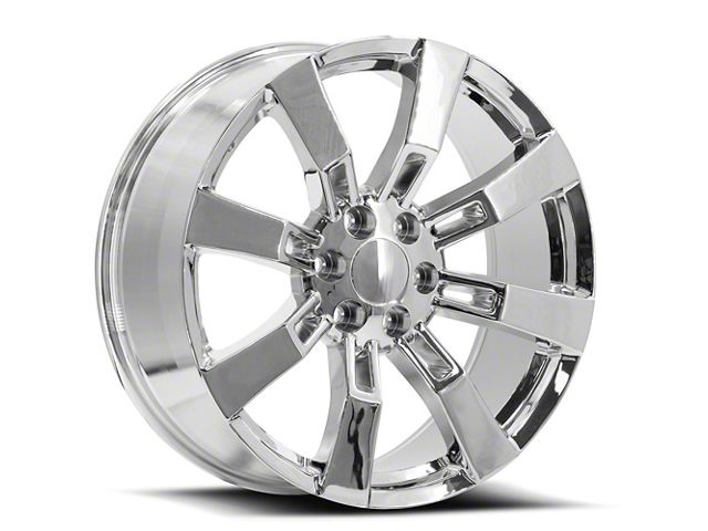 This 22x9 OE Revolution G-02 Chrome 6-Lug Wheel; 22x9; 31mm Offset is completed in a high-quality chrome finish that will make everyone take notice. Using a 3-stage process involving copper, nickel and chrome, you get a sensational bright wheel that can withstand the rigors of daily driving.