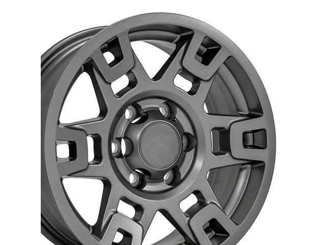 Application This TY16B Satin Graphite 6-Lug Wheel; 17x7; 4mm Offset, with a backspace of 4.157 Inch, 105.6mm; and bolt pattern of 6 x 139.7mm (6 x 5.5-Inch), designed to fit 2025–2026 4Runner models, sold individually.