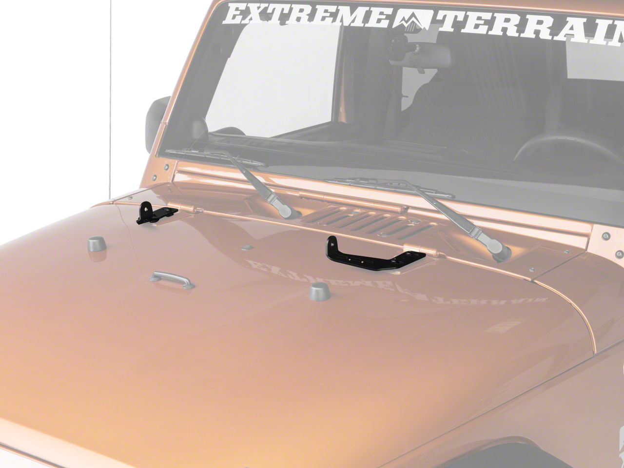 Application. The Off Camber Fabrications by MBRP Black Coated Hood Light Kit is specifically designed to be used on 2007-2018 Jeep Wrangler JK models.