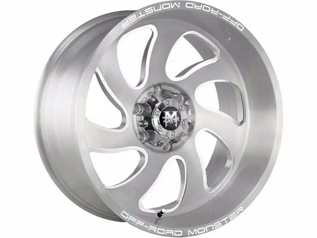 Off-Road Monster M07 Brushed Face Silver 5-Lug Wheel; 20x10; -19mm Offset offers a sleek and modern design that enhances the visual appeal of any vehicle. Crafted with attention to detail, this wheel merges aesthetic elegance with a robust build, making it a fitting choice for those seeking a blend of style and durability.