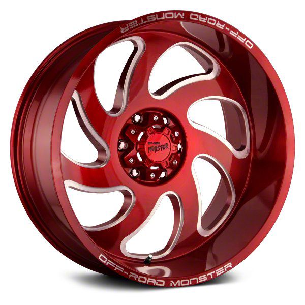 Off-Road Monster M07 Candy Red 6-Lug Wheel; 22x12; -44mm Offset. The Off-Road Monster M07 Candy Red 6-Lug Wheel offers a striking balance of style and refinement. Its unique design accentuates the vehicle's aesthetic, while the premium construction underscores its robust nature. This wheel is a perfect choice for those seeking both elegance and a strong visual statement.