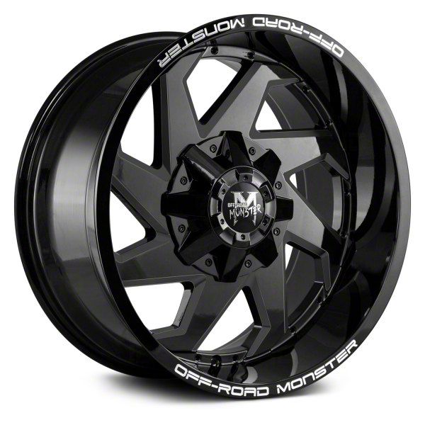Off-Road Monster M09 All Gloss Black 6-Lug Wheel; 20x10; -12mm Offset. The Off-Road Monster M09 All Gloss Black 6-Lug Wheel offers a striking balance of style and refinement. Its unique design accentuates the vehicle's aesthetic, while the premium construction underscores its robust nature. This wheel is a perfect choice for those seeking both elegance and a strong visual statement.