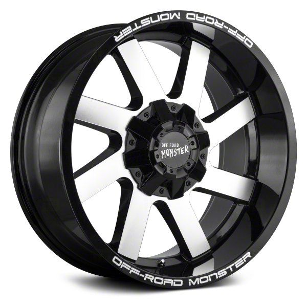 Off-Road Monster M80 Gloss Black Machined 6-Lug Wheel; 20x10; -19mm Offset. The Off-Road Monster M80 Gloss Black Machined 6-Lug Wheel offers a striking balance of style and refinement. Its unique design accentuates the vehicle's aesthetic, while the premium construction underscores its robust nature. This wheel is a perfect choice for those seeking both elegance and a strong visual statement.