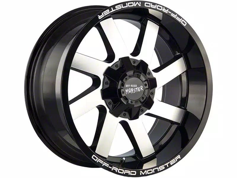 Off-Road Monster M80 Gloss Black Machined Wheel; 20x12. The M80 Gloss Black Machined Wheel; 20x12 from Off-Road Monster combines elegance with a modern edge, perfect for those looking to enhance their vehicle's look. Its design complements various vehicle styles and speaks to the wheel's premium quality, adding a touch of sophistication to any car.
