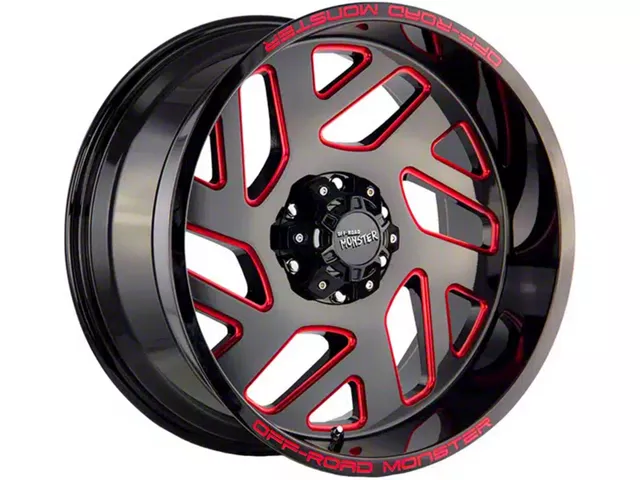 Off-Road Monster M19 Gloss Black Candy Red Milled Wheel; 20x10; -19mm Offset - This wheel's elegant design will certainly enhance your vehicle's aesthetic, complementing its luxury and performance. The unique styling of this wheel makes it an ideal choice for a standout quality of your ride, reflecting the premium quality associated with the Off-Road Monster brand.