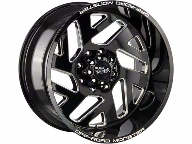 Off-Road Monster M19 Gloss Black Milled Wheel; 20x10; -19mm Offset. The Off-Road Monster M19 Gloss Black Milled Wheel offers a striking balance of style and refinement. Its unique design accentuates the vehicle's aesthetic, while the premium construction underscores its robust nature. This wheel is a perfect choice for those seeking both elegance and a strong visual statement.