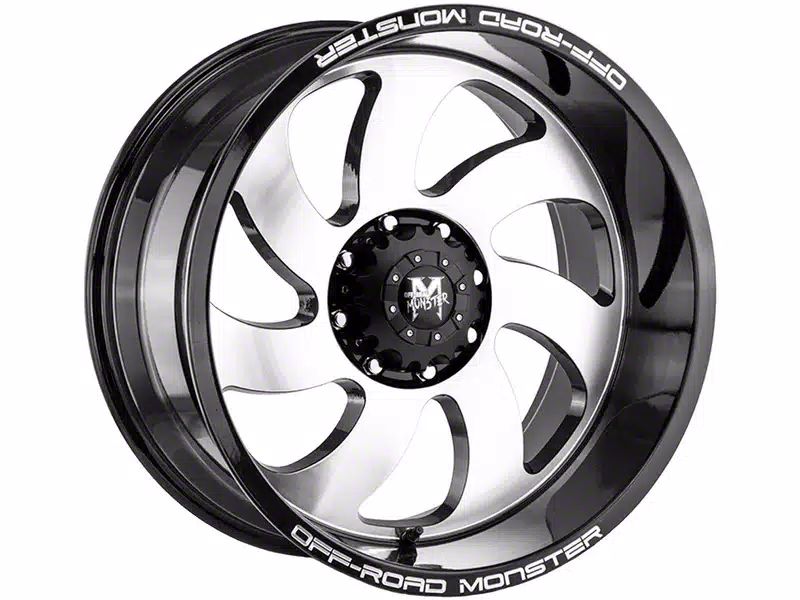 This 20x10 Off-Road Monster M07 Gloss Black Machined 6-Lug Wheel is completed in a high-quality gloss black finish with machined accents to create an impressive appearance. There's a durable clear coat that protects against driving hazards.
