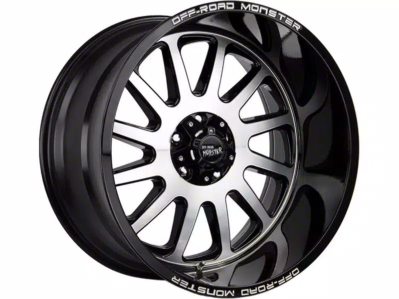 Off-Road Monster M17 Gloss Black Machined 6-Lug Wheel; 17x9; 0mm Offset exudes sophistication with its finish, offering a sleek and modern appeal to any vehicle it adorns. The design is meticulously crafted to enhance the aesthetic of your vehicle, giving it a distinctive and upscale look. Perfect for those seeking to elevate their vehicle's style, this wheel blends seamlessly with both contemporary and classic vehicle designs, making it a versatile choice for a wide range of vehicles. Its robust construction ensures durability, making it a reliable choice for drivers who value both style and quality.
