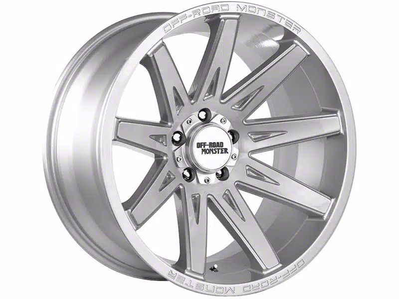 Off-Road Monster M25 Brushed Face Silver 6-Lug Wheel; 20x10; -2019mm Offset - Enhance your vehicle's style with the Off-Road Monster wheel. This wheel's distinctive design and finish complement your vehicle's aesthetics, making a bold statement. It's crafted to accentuate the unique character of your car, emphasizing a premium and robust appeal.