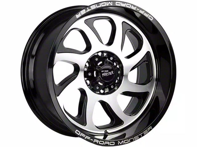 Off-Road Monster M22 Gloss Black Machined 6-Lug Wheel; 20x10; -19mm Offset. The Off-Road Monster M22 Gloss Black Machined 6-Lug Wheel offers a striking balance of style and refinement. Its unique design accentuates the vehicle's aesthetic, while the premium construction underscores its robust nature. This wheel is a perfect choice for those seeking both elegance and a strong visual statement.