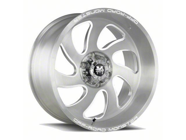 Off-Road Monster M07 Brushed Face Silver 6-Lug Wheel; 20x10; -19mm Offset exudes sophistication with its finish, offering a sleek and modern appeal to any vehicle it adorns. The design is meticulously crafted to enhance the aesthetic of your vehicle, giving it a distinctive and upscale look. Perfect for those seeking to elevate their vehicle's style, this wheel blends seamlessly with both contemporary and classic vehicle designs, making it a versatile choice for a wide range of vehicles. Its robust construction ensures durability, making it a reliable choice for drivers who value both style and quality.