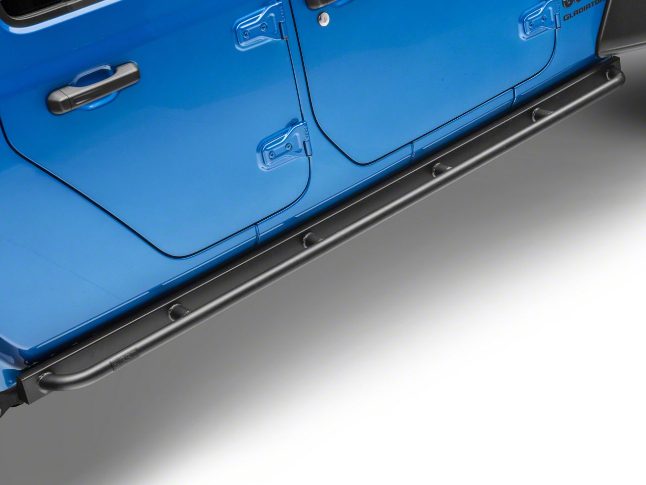 Application. These Jeep Licensed by RedRock Enhanced Rubi Rails with Jeep Logo; Textured Black are specifically designed to fit 2020-2026 Jeep Gladiator JT models. Driver and passenger side are included.