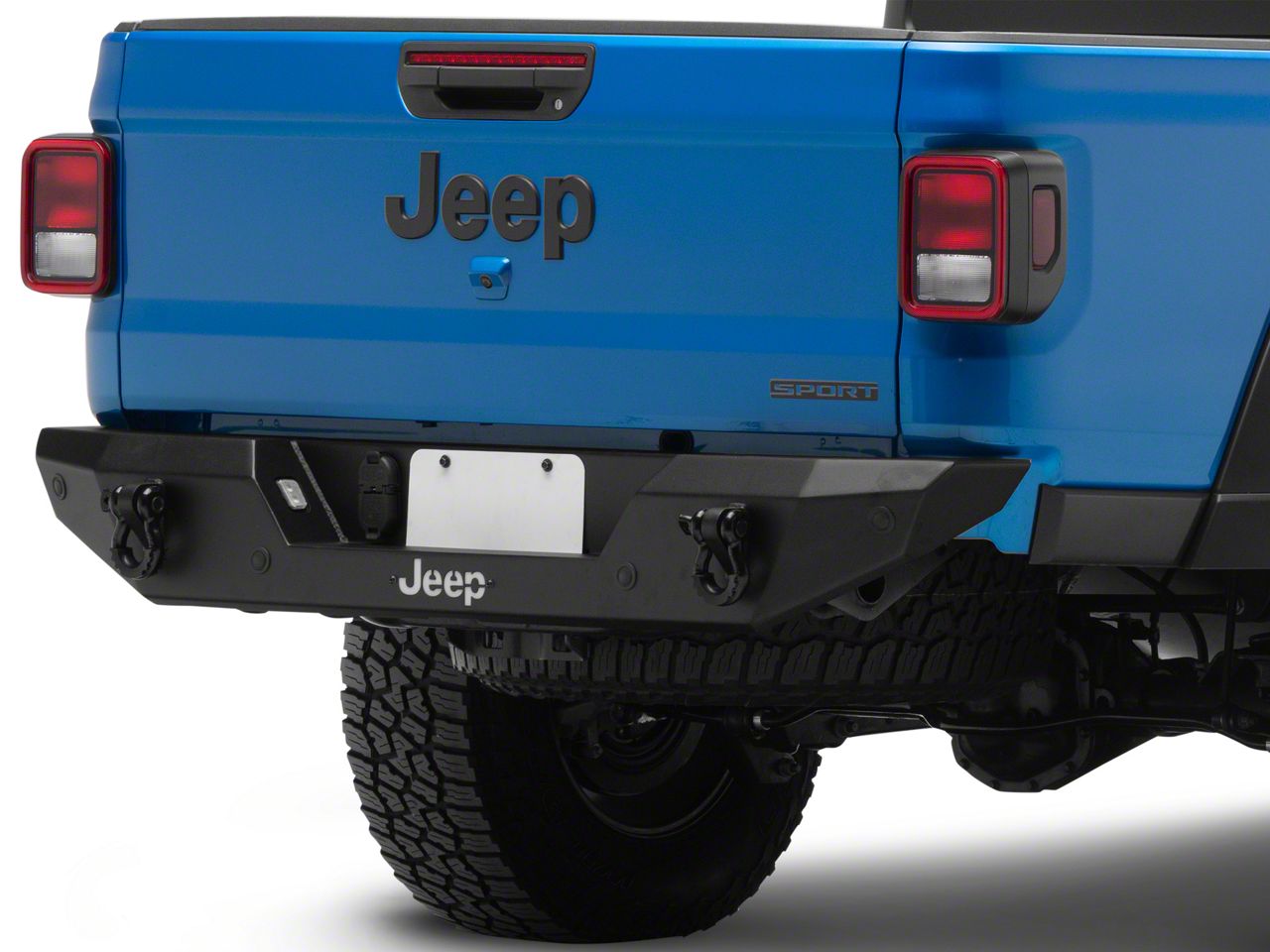 Application. This Jeep Licensed by RedRock HD Rear Bumper with LED Jeep Logo Backlight is designed to fit 2020-2026 Jeep Gladiator JTmodels. This Rear Bumper is designed to work with models that are equipped with or without rear mounted backup sensors.