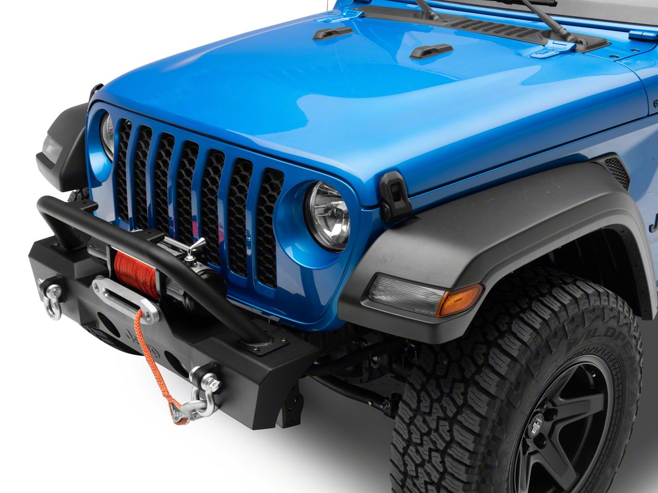 Light up The Night. This Jeep Stubby Front Winch Bumper is the perfect solution for night-time trail runners. This Bumper features 2 OE sized fog light mounting tabs that allow you to easily swap over your Gladiator's factory LED fog lights. The over-rider hoop also includes 2 mounting tabs for use with any aftermarket auxiliary lights to ensure complete confidence in any night time adventure.