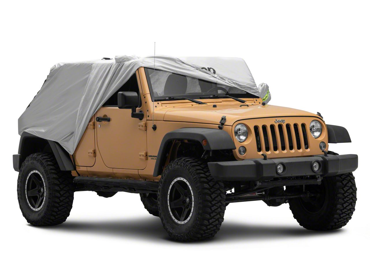 Custom Fit to Your Specific Body Style. This Jeep Licensed by TruShield All-Weather Cab Cover is custom designed to fit your 4-Door Wrangler perfectly. It even features tie down anchor points to further help seal out the harsh elements that can ruin your Wrangler's finish.