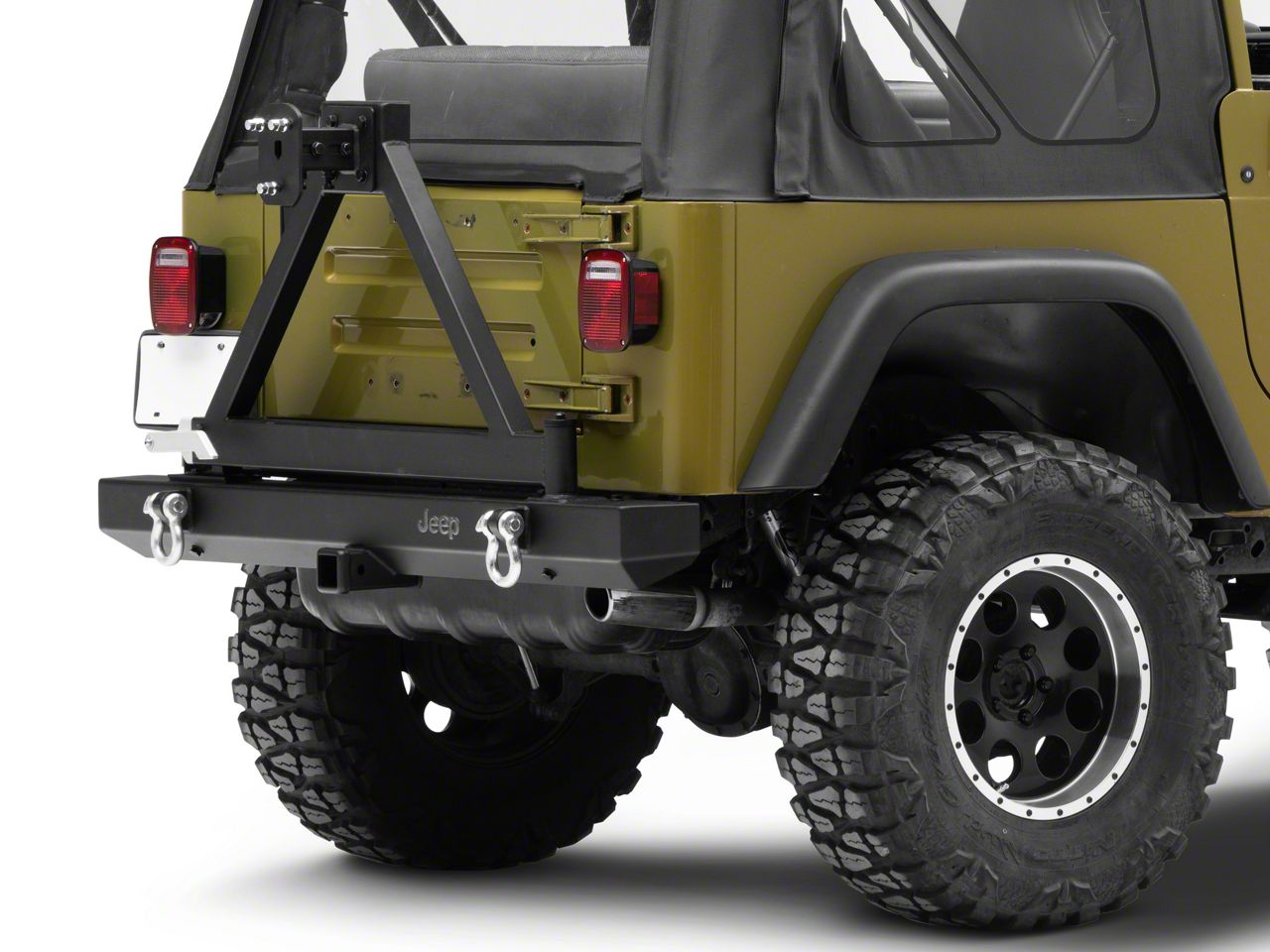 Application. This Jeep Licensed by RedRock Classic Rear Bumper with Tire Carrier and Jeep Logo is designed to fit 1987-2006 Jeep Wrangler YJ and TJ models.