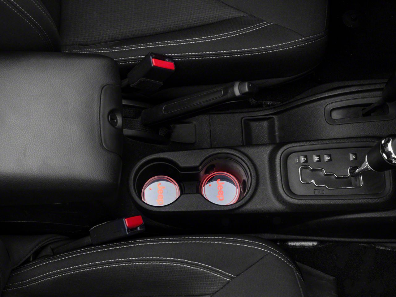 Custom Illumination. Give your Jeep Wrangler a custom illuminated interior with a set of Jeep Licensed by RedRock Color Changing LED Cup Holders that feature the Jeep logo. These illuminated Cup Holder Pads feature 7 color options that you can easily select from with just a push of a button.