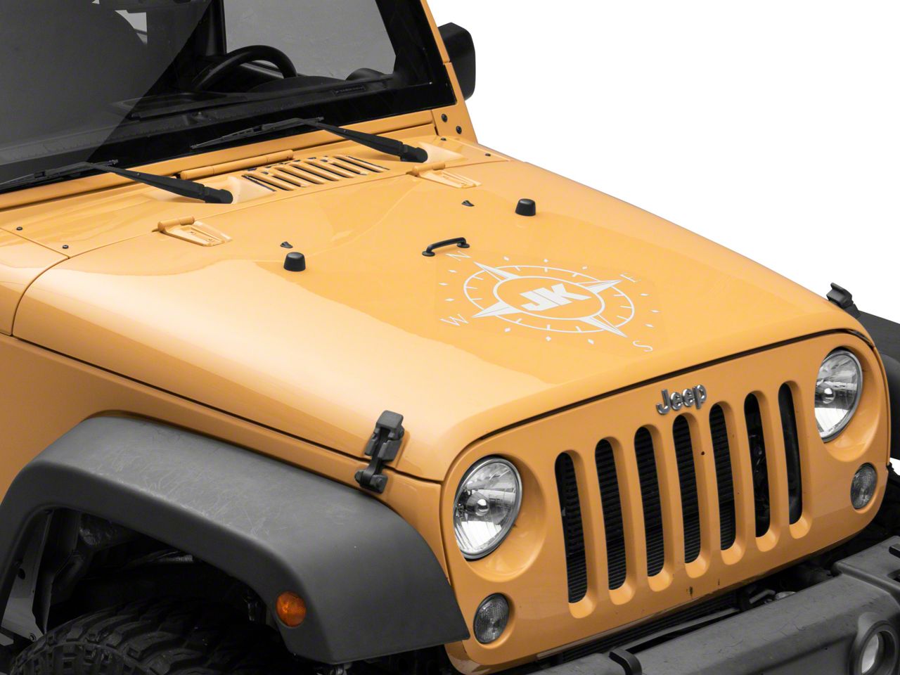 Compass Design with JK Logo. Now you can add adventurous off-road styling to your JK Wrangler with this officially licensed JK Compass Decal. This Jeep Compass Decal measures 19.7 x 22.6 inches and can be applied to any smooth flat surface and looks especially good across your hood, on your door, or in the back window.