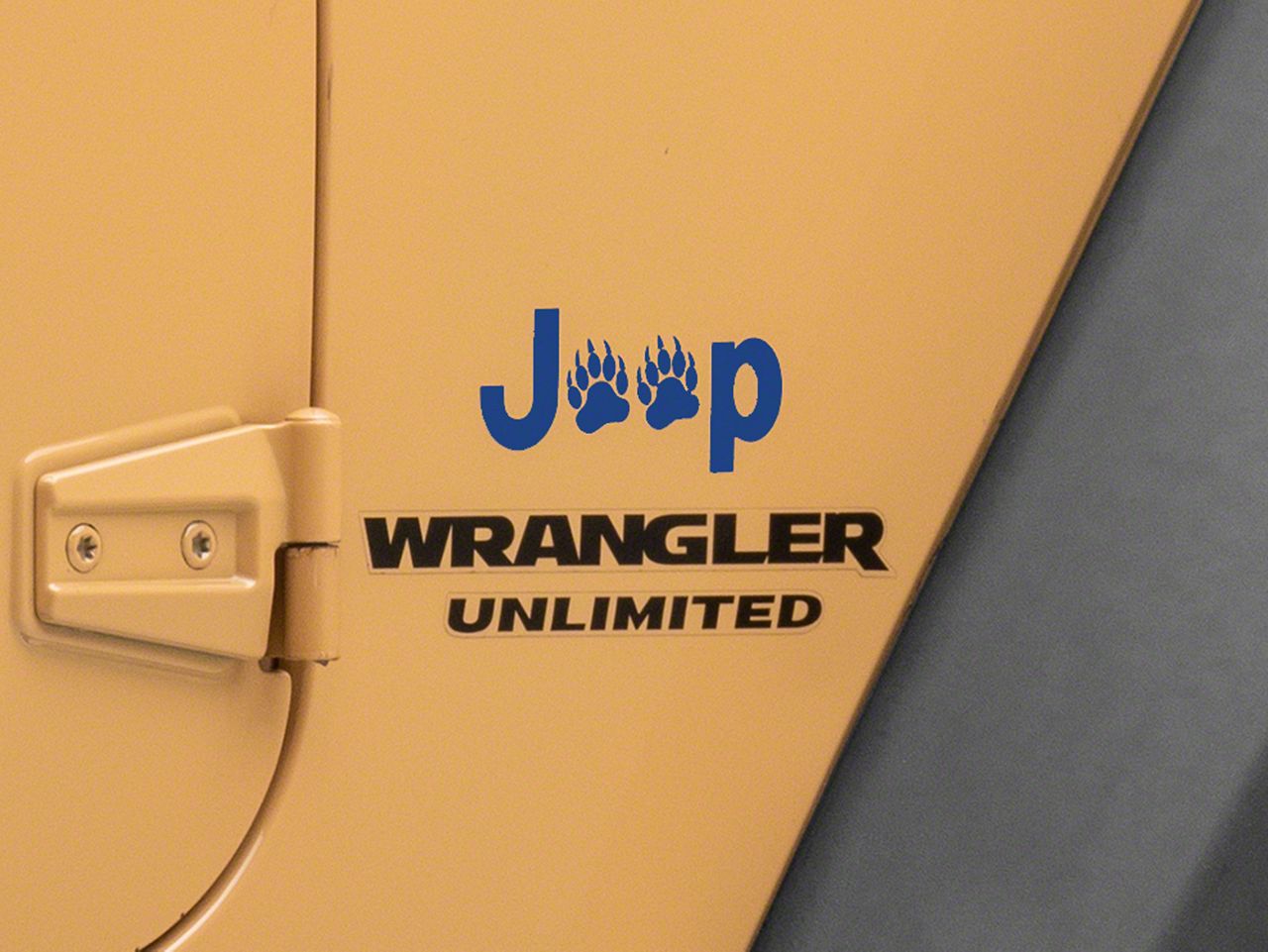 Application. This Jeep Licensed by RedRock Jeep Paw Side Logo; Blue is designed to fit 1987-2018 Jeep Wrangler YJ, TJ and JK models. Sold individually.