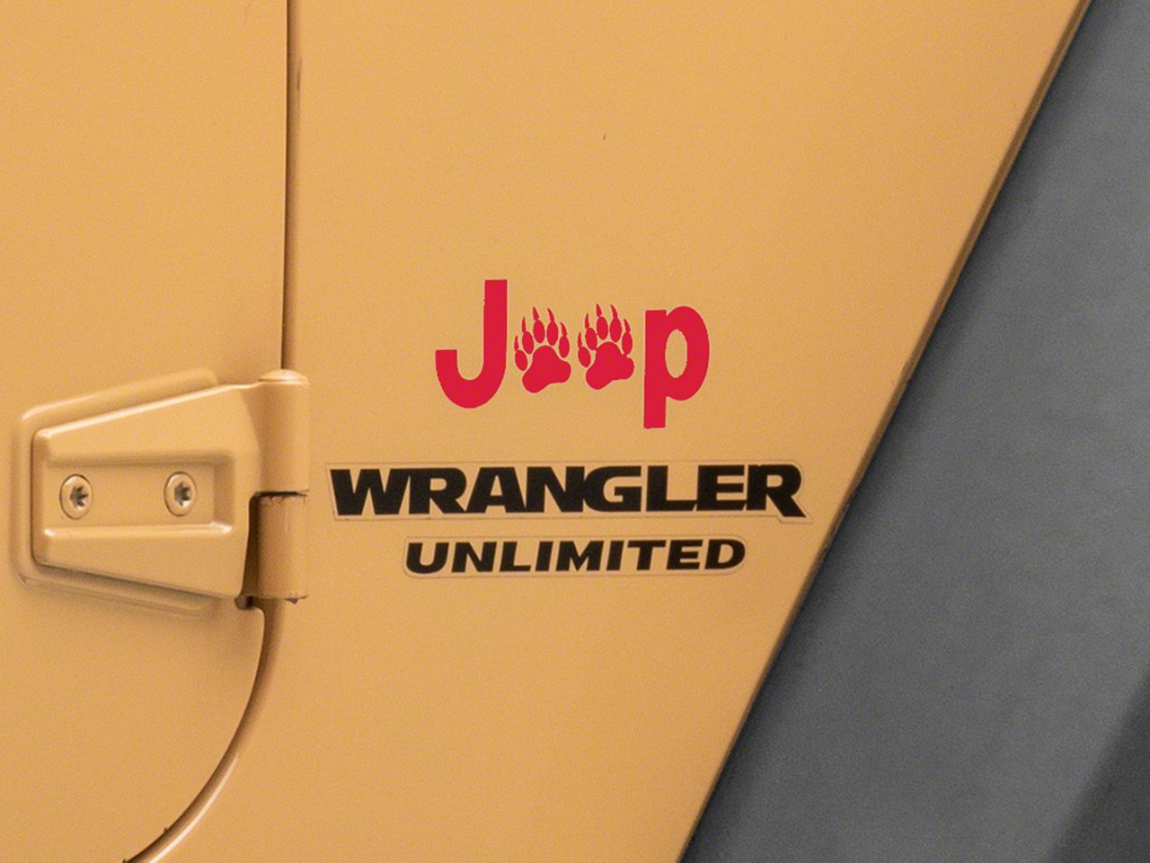 Application. This Jeep Licensed by RedRock Jeep Paw Side Logo; Red is designed to fit 1987-2018 Jeep Wrangler YJ, TJ and JK models. Sold individually.