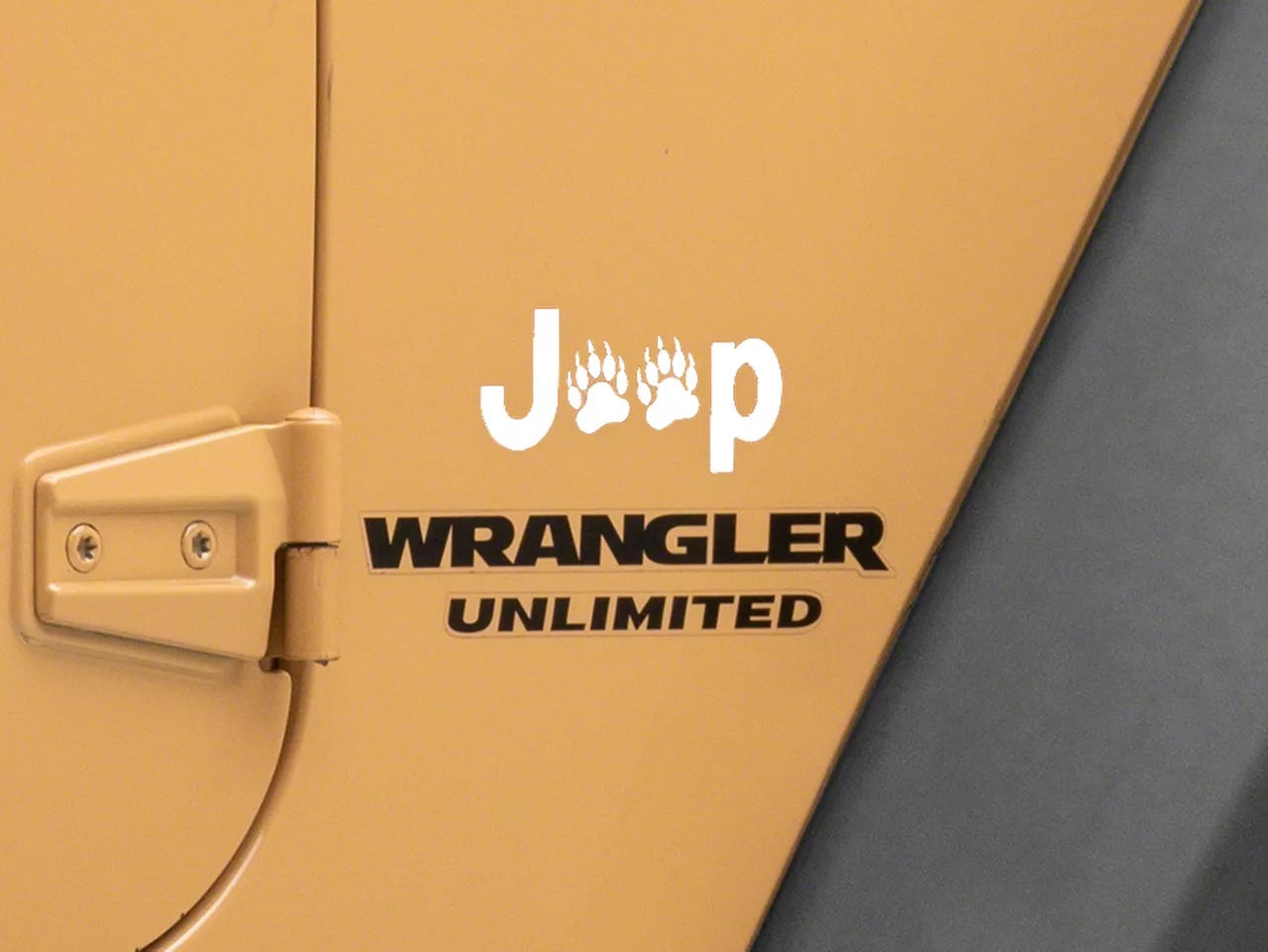 Application. This Jeep Licensed by RedRock Jeep Paw Side Logo; White is designed to fit 1987-2018 Jeep Wrangler YJ, TJ and JK models. Sold individually.