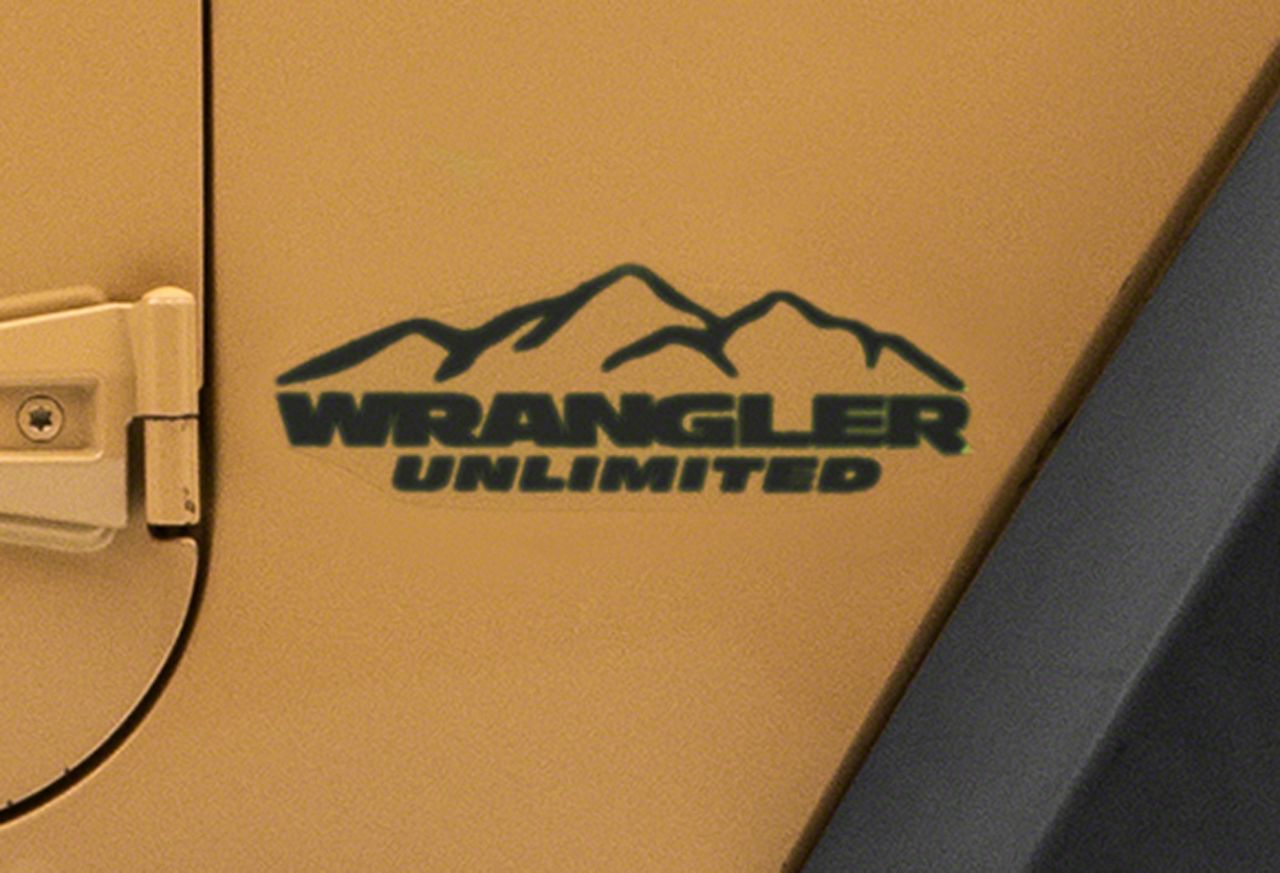 Moutain Range Wrangler Unlimited. These Wrangler Unlimited Moutain Range Graphic Decals are a simple and effective way to let everyone know exactly what your driving. Officially licensed by Jeep, these Decals feature a mountain range with the Wrangler Unlimited logo below.