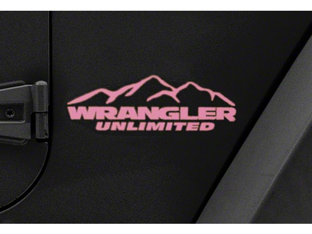 Application. These Jeep Licensed by RedRock Moutain Wrangler Unlimited Decal; Pink are designed to fit 1987-2018 Jeep Wrangler YJ, TJ and JK models. Driver and passenger side included.