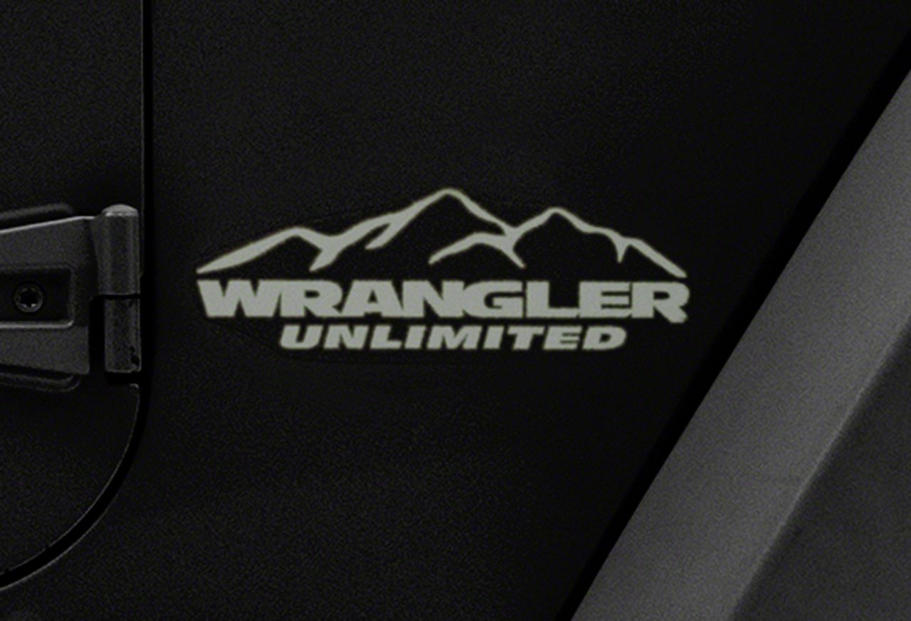 Moutain Range Wrangler Unlimited. These Wrangler Unlimited Moutain Range Graphic Decals are a simple and effective way to let everyone know exactly what your driving. Officially licensed by Jeep, these Decals feature a mountain range with the Wrangler Unlimited logo below.