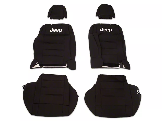 Application. These Jeep Licensed by TruShield Neoprene Front and Rear Seat Covers; Black are designed to fit 2011-2012 Jeep Wrangler JK 4-Door models.