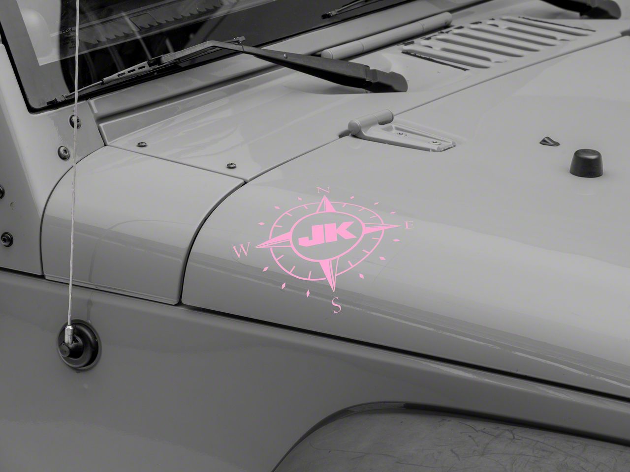 Application. These Jeep Licensed by RedRock Small Compass Decals with JK Logo; Pink is designed to fit 2007-2018 Jeep Wrangler JK models. Sold in pairs.