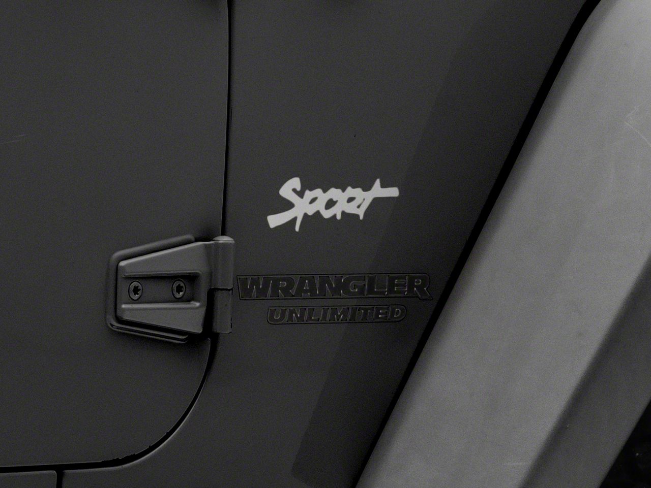 Sport Fender Decals. These Jeep Sport Script Fender Decals are a simple and effective way to let everyone know exactly what your driving. Officially licensed by Jeep, these Sport Script Logo Side Decals will give your Wrangler a bolder appearance that looks great out on the street or out on the trail.