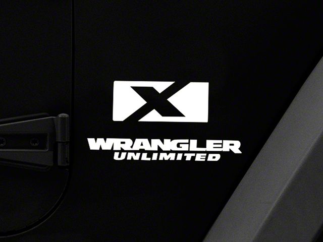 X Logo with Wrangler Unlimited. These Wrangler Unlimited X Graphic Decals are a simple and effective way to let everyone know exactly what your driving. Officially licensed by Jeep, these Decals feature a stylized X with the Wrangler Unlimited text logo below.