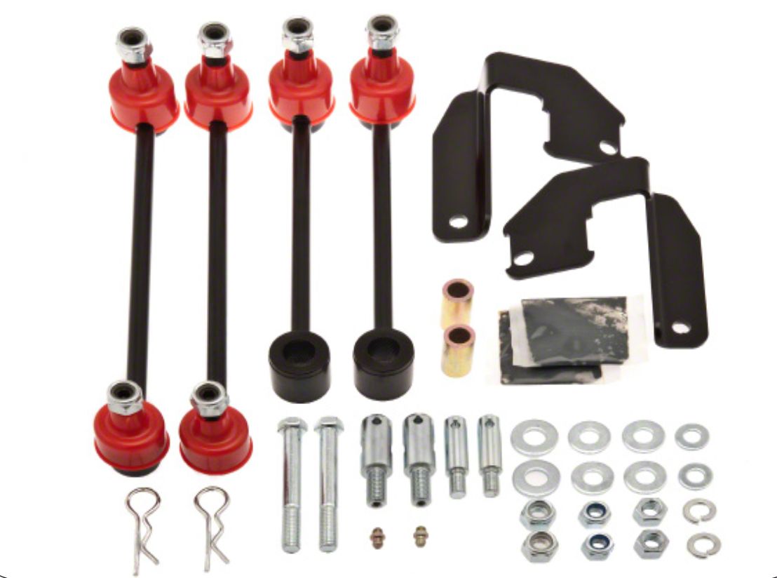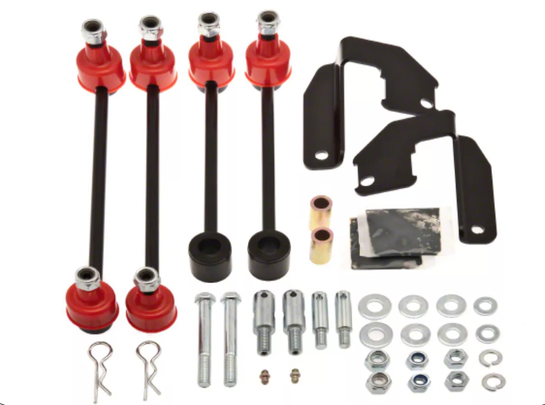 Provides Much-Needed Lift. Get the precise lift you need by installing this Old Man Emu Front Sway Bar Quick Disconnect End Link Kit. This product comes with everything you need to disconnect that heavy piece of bent metal that helps your Jeep Wrangler JK stay planted on the road. That way, the front of your vehicle will gain enough ground clearance to avoid any undercarriage damage when crawling off-road.
