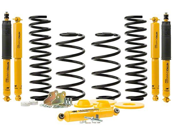 Reinforced Ground Clearance. Unlike the factory setup, the Old Man Emu 2-Inch Light Load Suspension Lift Kit helps navigate road obstacles with unwavering ease. As it elevates the vehicle's height, the kit grants a few inches of additional ground clearance. It similarly comes with Nitro charger Sport Shock Absorbers, which briefly conform to the terrain as it displaces drivability for on-road and off-road touring.