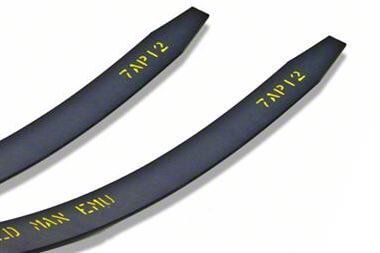 High-Strength Build Quality. This Old Man Emu extra leaf spring is precision-crafted from high-grade steel for superior durability and a consistent fit when installed. These components are then fully scragged to permanently "set" their shape, preventing sagging. In addition, these components undergo shot peening to further improve durability. Finally, this extra leaf spring receive a tough black powder-coat finish for maximum corrosion protection.