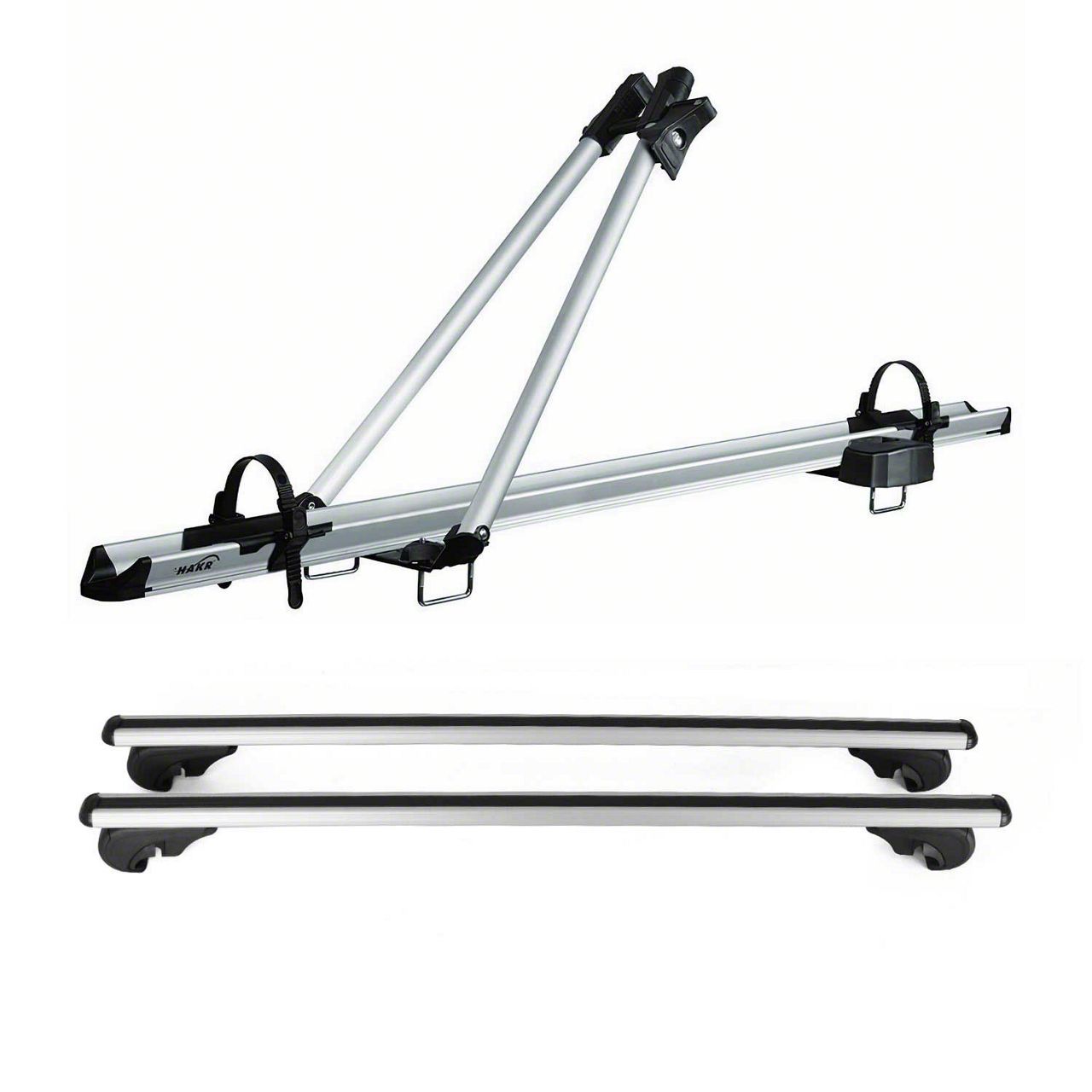 Introducing the Bike Rack + Roof Rack Set by OMAC USA, a premium-quality, lockable-removable design made from durable aluminum material. This set includes 2 roof racks cross bars and 1 bike carrier, offering the ultimate solution for carrying your bike sa