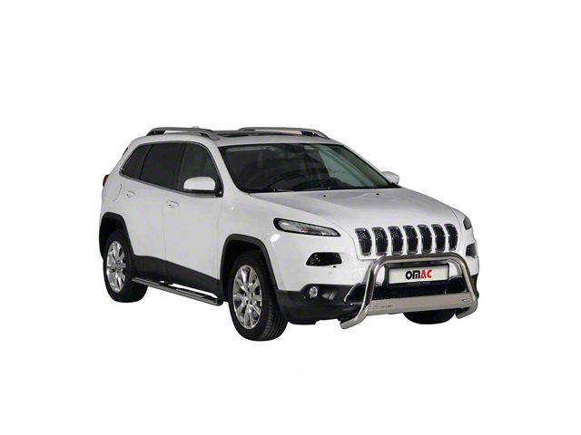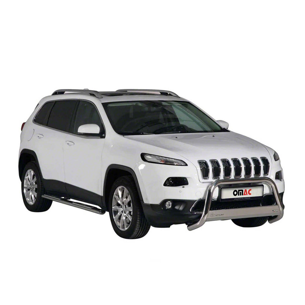 Application. OMAC Push Bull Bar in Silver fits 2014-2023 Jeep Cherokee KL models.