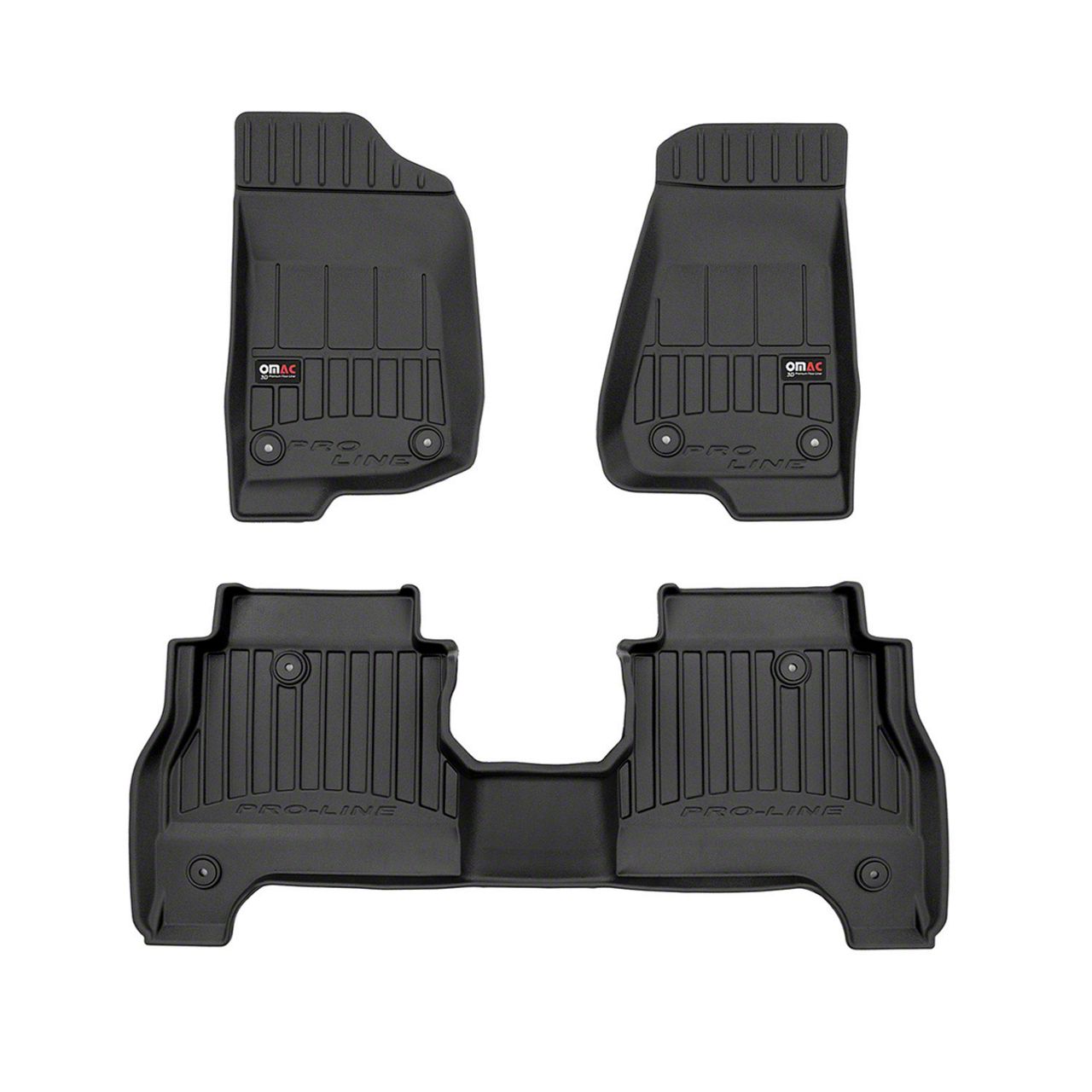 Reliable Functional Design. Enhance the interior protection of your vehicle with the OMAC Premium 3D Front and Rear Floor Liners. Designed with a 3D pattern, these floor liners offer a precise fit and full coverage for your vehicle's front and rear floors. They are made from high-quality recyclable TPE material, ensuring durability and longevity. The black powder-coated finish adds a sleek and stylish look to your vehicle's interior. These floor liners are weatherproof, meaning they can withstand various weather conditions without compromising their performance. Whether it's rain, snow, or mud, these floor liners will keep your vehicle's floors clean and protected. With their rugged construction, they are designed to withstand the rigors of daily use, providing long-lasting durability and reliability.