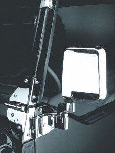 Specs. Jeep mirrors can easily get ripped off while off-roading, and if you need to replace a lost or damaged mirror set, the Rugged Ridge Chrome Replacement Half Door Mirrors are a good choice. Their housing is made out of lightweight but tough UV-resistant plastic, which has a gleaming chromed finish for street machine style. The mirror glass has the original stock shape.