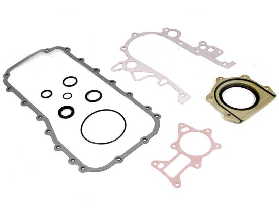 We proudly offer all the parts you need to keep your Willys/Jeep running like new with quality standards that always meet or exceed those of the factory part. This replacement lower engine gasket set fits 07-11 Wrangler JK / JKU models equipped with 3.8 liter engines. Set includes oil pan gasket, water pump gasket, timing chain cover gasket, front main crankshaft seal, pickup tube seal, rear crankshaft oil seal and retainer. Replaces OE 68029544AB. This lower engine gasket set fits 07-11 Jeep Wrangler with a 3.8L engine.