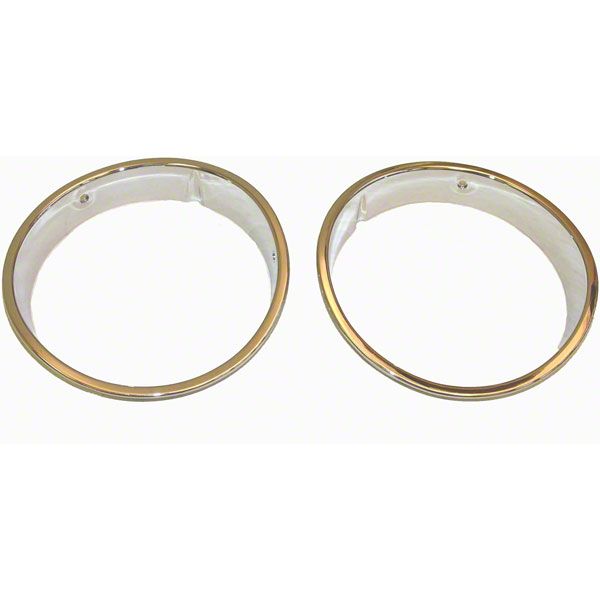 Specs. This pair of headlight bezels by Rugged Ridge is a great replacement for bezels that have been damaged or lost. Made from chrome plated plastic, this set will help give your Wrangler a face lift.