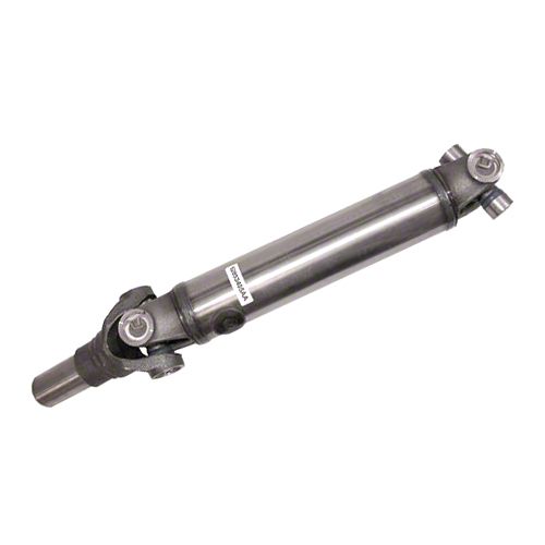 Construction. Omix-ADA's rear driveshaft assembly is made from tough steel and measures 16 inches in length. Featuring a 5 year manufacturer's warranty, this driveshaft comes complete with U-joints (universal joints) and a slip yoke. The part works with 2.4 liter, 4 cylinder engines and a manual transmission. Installation is moderately challenging and can require up to 4 hours to complete.