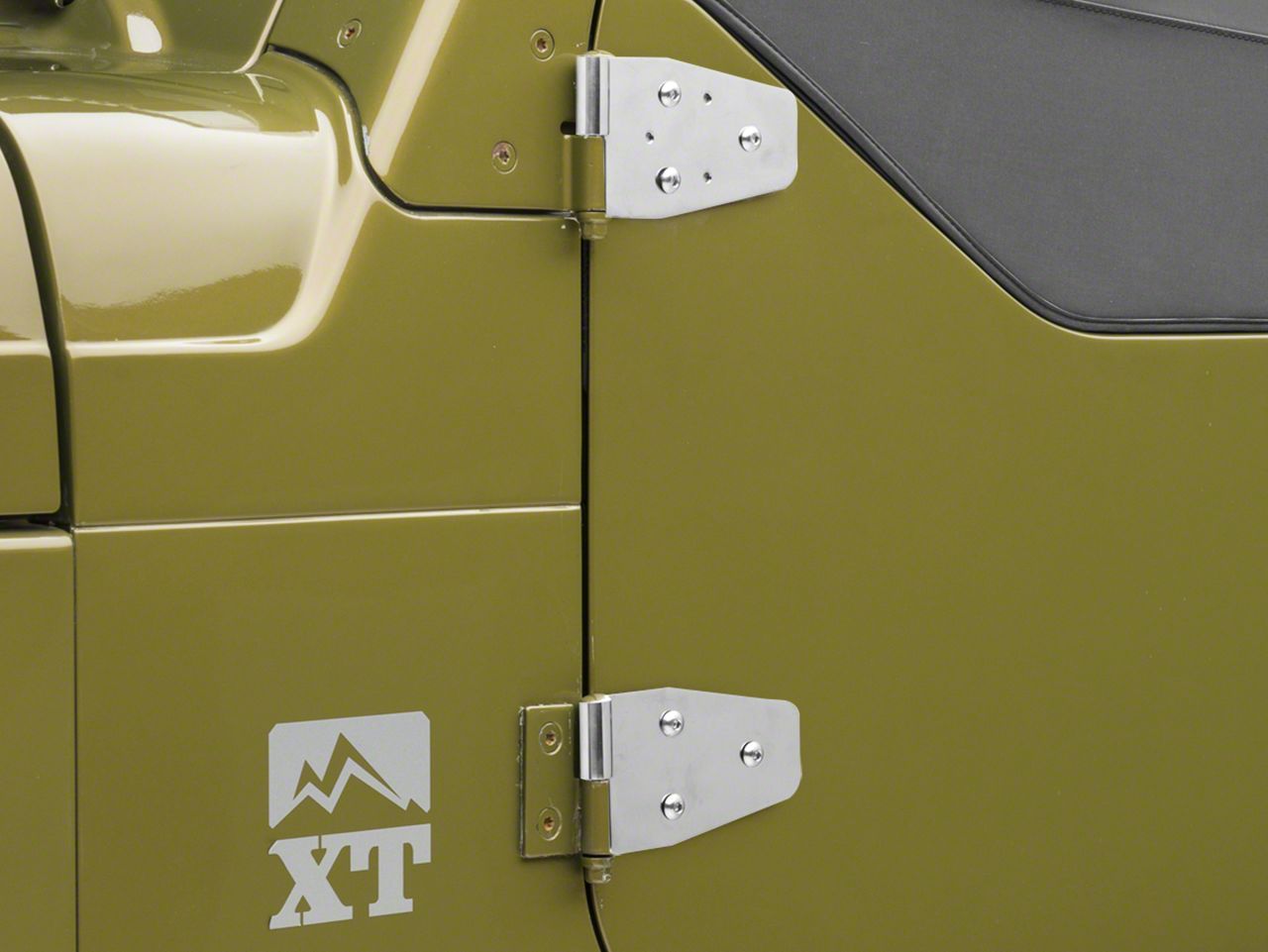 Specs. Great design boils down to the details. Finish the look of your Wrangler with these polished, stainless steel half door hinges from Rugged Ridge. They're made from rust-resistant 304 stainless steel which is then nickel dipped and polished to a mirror finish. These hinges look great on any color Wrangler, and they'll add the perfect finishing detail.