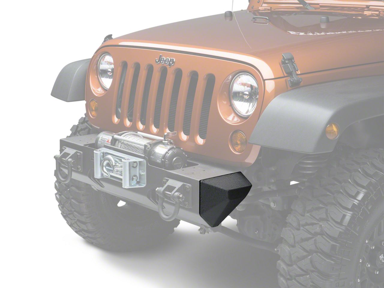 Functionality. Give your jeep a tough look with Omix-ADA Rugged Ridge Stubby Bumper Ends. They extend till the edge of Wrangler's grille for extra style and protection. These Jeep JK XHD bumper ends provide better approach angle and maximum clearance for large tires.