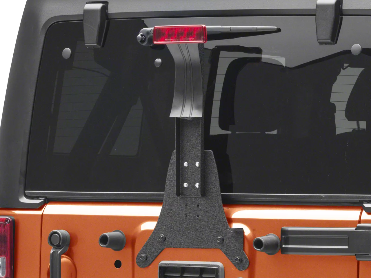 Construction. This extension is completely adjustable in 1 inch increments and moves your third brake light up from 33 inches to 42 inches. An antenna mount is also integrated into the design. Increase your Jeep's visibility to other drivers by getting your third brake light out from behind the spare tire. This extension is designed to be used either with or without the factory spare tire mount.