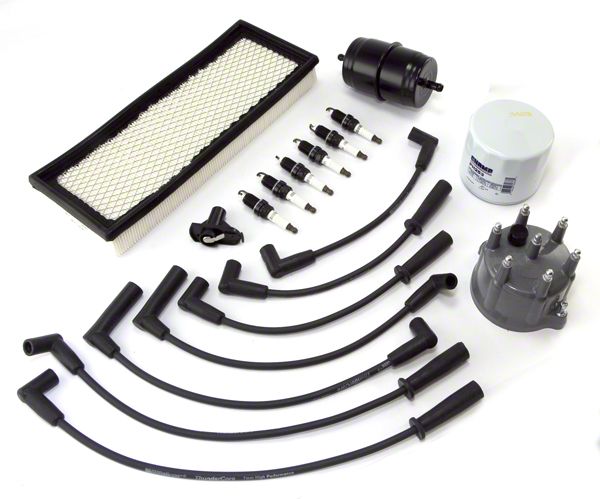Specs. Turn your engine's ragged sputter into a powerful purr using the 6-cylinder 4.0-liter Tune-Up Kit offered by Omix-ADA. Your engine will be in tip-top shape and ready to hit the trail after you use this tune-up kit to change the air filter, put some life back in the spark plug and distributor system with new plugs and ignition wires, and tend to a few other details. These adjustments may seem small but overall they add up to a big improvement in your Wrangler's response and performance.
