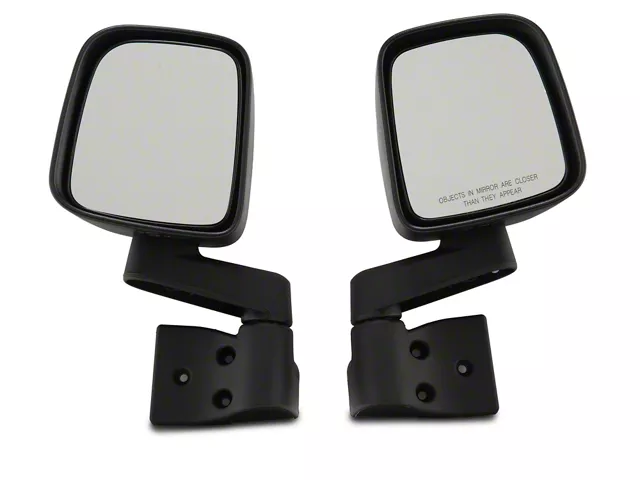 Construction and Appearance. These side mirrors feature a durable matte black finish that resists fading and complements a rugged aesthetic. Crafted to meet original specifications, they are OC compatible and comparable in quality to factory-installed components. The housing is designed to stand up to weather exposure, trail debris, and daily use while maintaining their shape and appearance over time.