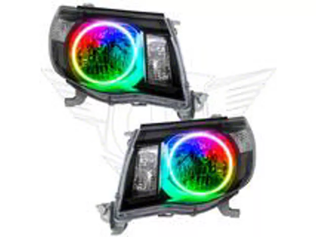 Enhanced Visibility and Safety. Make your Toyota Tacoma stand out with this pair of Oracle Black OE Style Headlights With ColorSHIFT LED Halos. These show-stealing headlights have been designed to customize your truck’s appeal with their ColorSHIFT LED halos. These halos have customizable features, so you can dazzle anyone with incredible light shows.