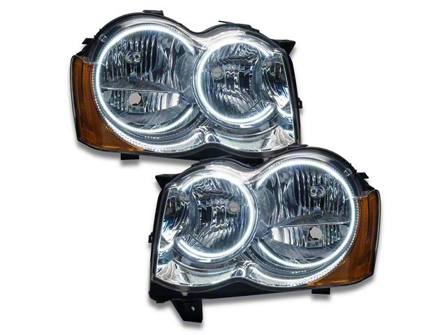 Application. The Oracle OE Style Headlights with White LED Halos; Chrome Housing; Clear Lens fits 2008-2010 Jeep Grand Cherokee WK with Factory Halogen Headlights.