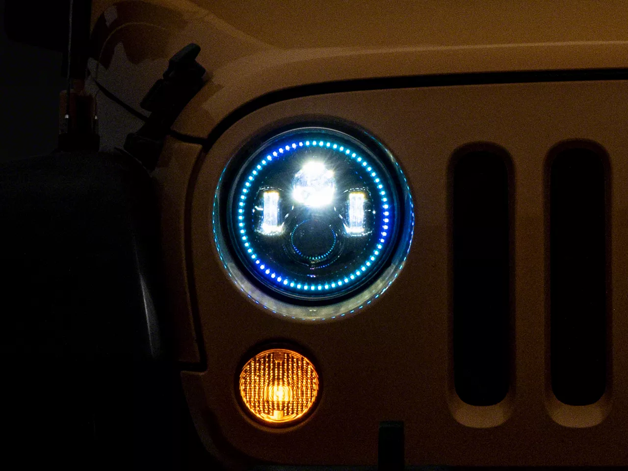 Integrated ColorSHIFT Halos. The Oracle 7-Inch High Powered LED Headlights are designed to fit the initial measurements of the majority of the latest automotive LEDs, guaranteeing a comfortable and simple fitment. They even come fitted with Oracle's patented DynamicSHIFT halo lights which have RGB and multi-color functions that add more fun and flair to your Jeep Wrangler.